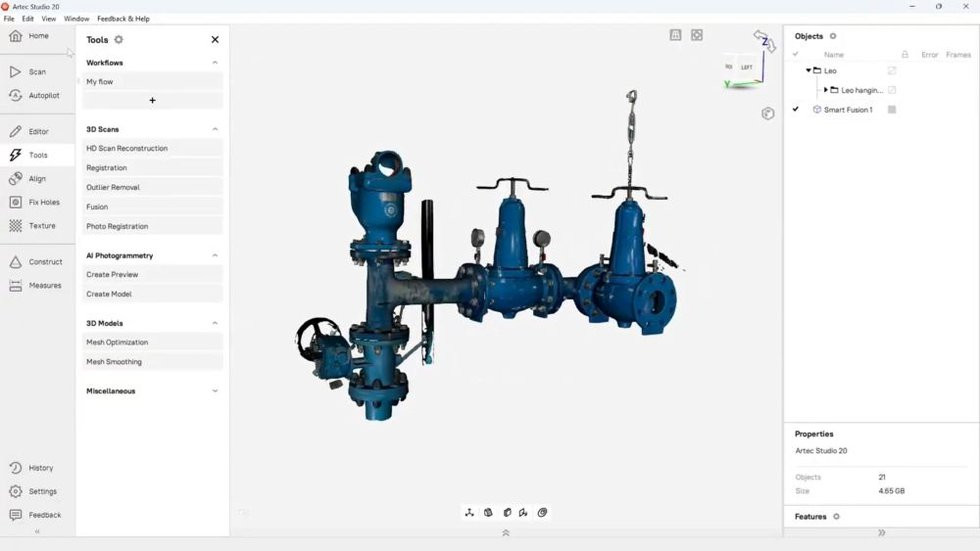 Az Artec Studio 20 egy mindent-egyben 3D adatgyűjtő és feldolgozó szoftver: kézi, állványos és asztali 3D szkennerek, valamint AI-fotogrammetria (fotó/videó) adataihoz. Teljes munkafolyamatot lefed – rögzítés, tisztítás, visszamodellezés (RE), ellenőrzés (QA), kiadás. Az új Workflows modul testreszabható automatizálást ad, mellyel a gyakori feladatok akár jelentősen gyorsíthatók; az AS20 továbbá fejlesztéseket hoz a Micro II, Spider II, Ray II, Point és más Artec eszközökhöz is.