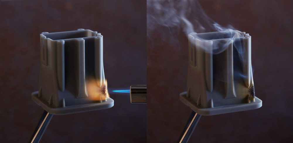 A lángálló Formlabs Flame Retardant műgyanta egy önkioltó, halogénmentes, UL94 V-0 SLA tanúsítvánnyal rendelkező alapanyag, kedvező láng-, füst- és toxicitási (FST) besorolással.