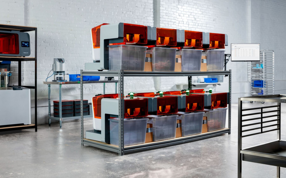 A Formlabs gyártó és szolgáltató központjában körülbelül 140 darab Form 3 SLA nyomtatót üzemeltetnek mindössze egyetlen operátor segítségével. A Formlabs automatizációs ökoszisztémájának köszönhetően heti több mint 2000 darab nyomat készül el a gépeiken. Itt olvashat a központ működéséről részletesen.