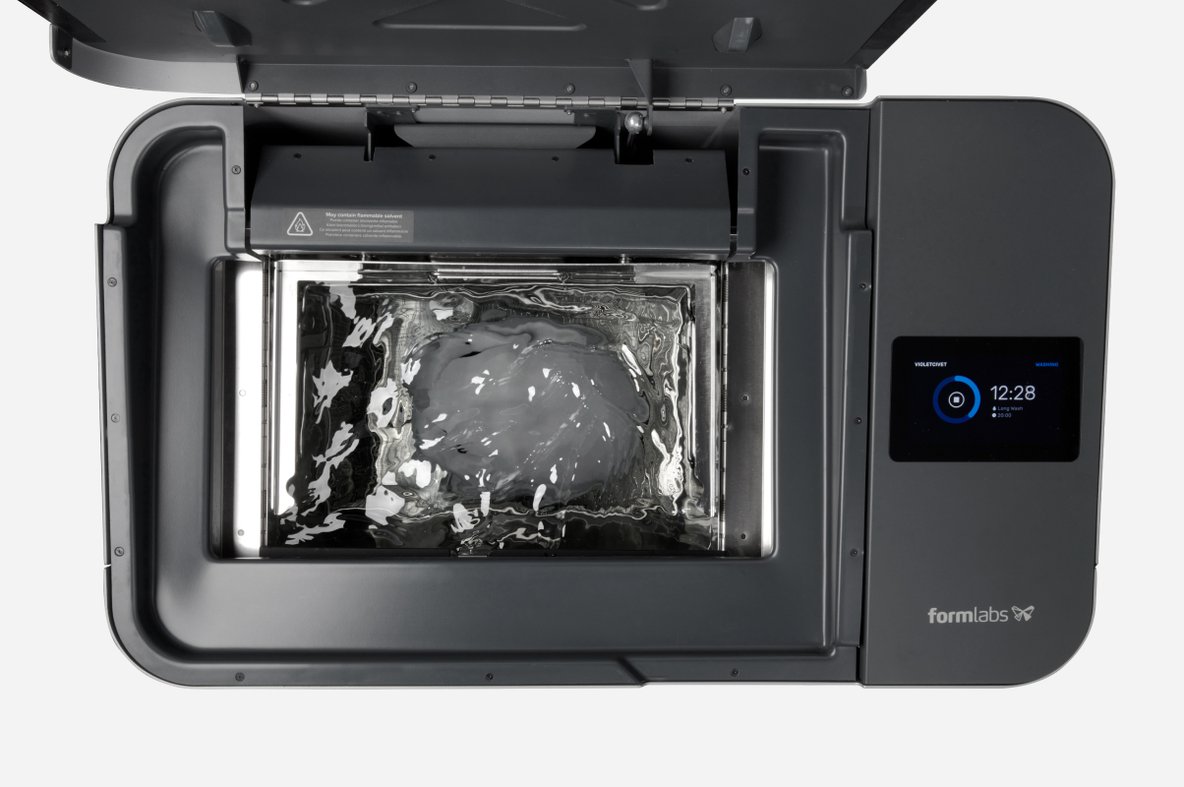 Minden SLA technológiával nyomtatott alkatrész felületéről szükséges nyomtatás után lemosni a maradék, folyékony műgyantát. A Form Wash L mosó ezt a munkafolyamatot automatizálja, hogy tökéletesen tiszta, sima felületű alkatrészeket kapjunk mindenféle ragacsos érzet nélkül.