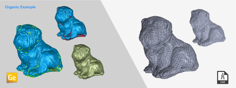 Míg a modern CAD szoftverek még mindig meglehetősen korlátozottak a 3D szkennelési adatok felhasználásában, a Geomagic Essentials biztosítja a CAD rendszer használatához szükséges eszközöket a szkennelés alapú modellezési munkafolyamat részeként.
