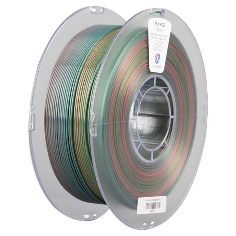Ez a többszínű PLA az alábbi színekből áll: Arany - Mély zöld - Mély kék - Bíbor - Réz színű - Piros
