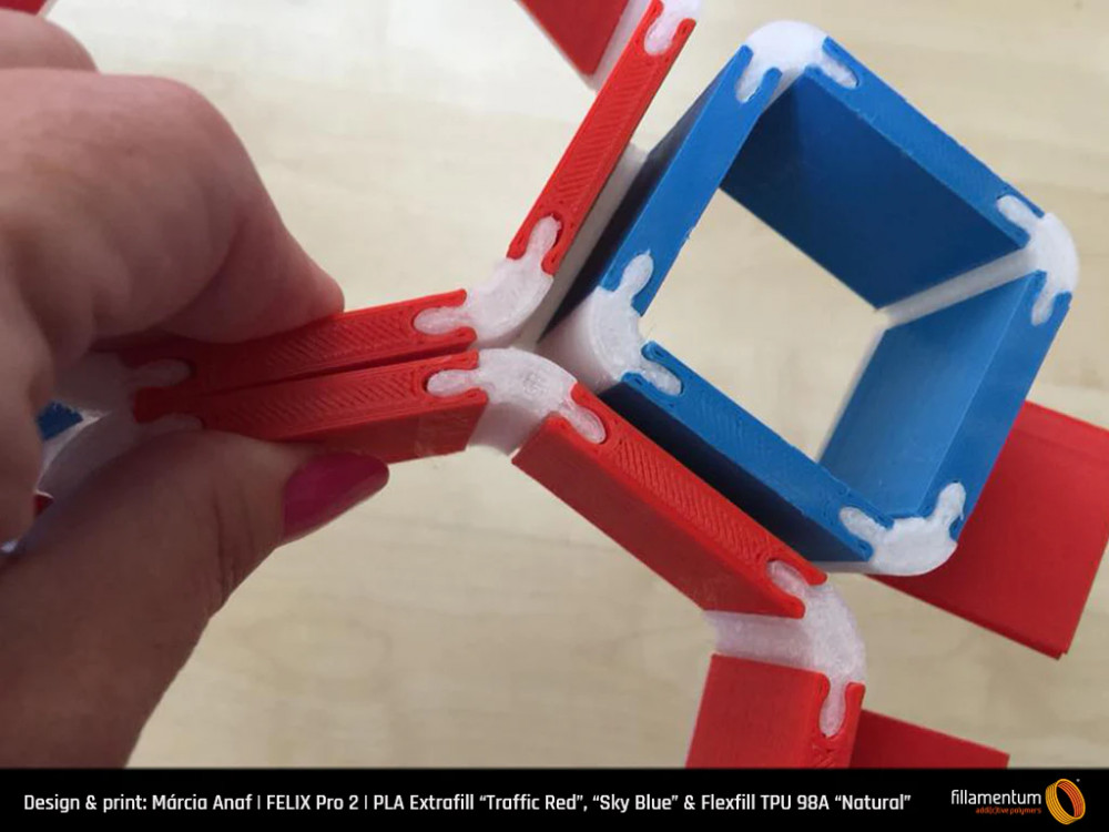 98A rugalmasságú nyomtatószál a cseh Fillamentum gyártótól flexibilis tárgyak nyomtatásához, vagy akár egy extra, puha tapintású fedőréteg nyomtatásához a modell felületén.