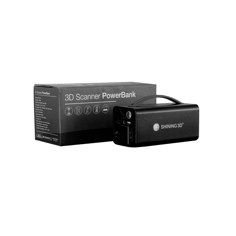 A SHINING3D PowerBank 150 Wh-s, hordozható tápegység SHINING3D 3D szkennerekhez. AC, DC és USB kimeneteivel megbízhatóan működteti az EinScan/FreeScan eszközöket terepen is, akár teljes munkanapon át. 200×115×90 mm, 1,46 kg – könnyen szállítható, ipari felhasználásra tervezve.