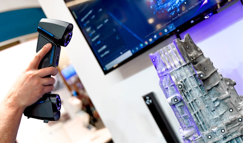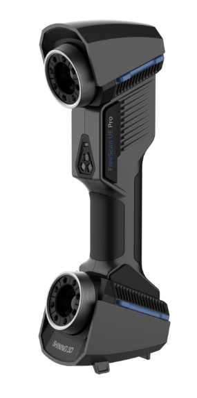 A FreeScan UE Pro egy professzionális, ipari kézi 3D szkenner, amely kék lézeres technológiával biztosít metrológiai szintű pontosságot akár 0,02 mm felbontással. Kompakt és ergonomikus kialakítása révén hosszabb ideig is kényelmesen használható, miközben rendkívül pontos adatokat szolgáltat.
