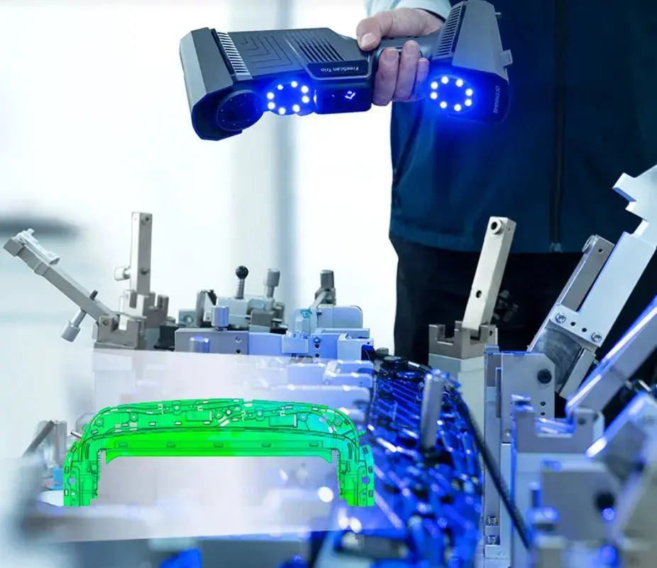 A FreeScan Trio beépített fotogrammetria üzemmóddal rendelkezik, amely figyelemre méltó, akár 0,02 mm + 0,015 mm/m térfogati pontosságot is képes elérni. Helyezzen fel markereket és egy mágneses mértékrudat (a csomag része), így a FreeScan Trio a többméteres tárgyak, például járművek szkennelése esetén is metrológiai pontosságú adatokat rögzít.